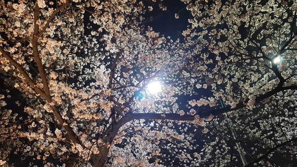 어제 맥주한캔들고 근처 벚꽃명소에 가보니 어느덧 거의 만개를 했네요..