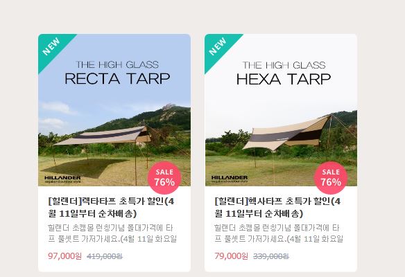 초캠몰에서 힐랜더 렉타 & 헥사 타프 싸게 파네요.