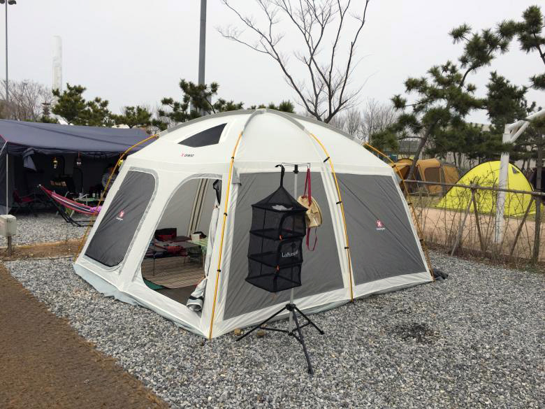 그리고 추위를 싫어하는 와이프 때문에 한겨울 캠핑을 안나가고 무더운 여름에도 자주나가는 스타일상 뭔가 개방감도 훌륭한 녀석이 필요했구요.