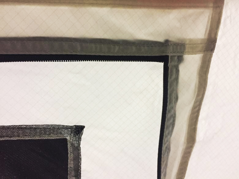 장점 : 전 개방감에 반해 샀는데 반대로 완벽 밀폐됩니다. 지퍼로 모든 매쉬창 가린후 지퍼부분은 저런식으로 밀폐되고 가림막 상단은 처지지 않게 웨빙도 있고 스킨 텐션으로 짱짱하게 가려지더라구요. 바람이 안들어 옵니다.