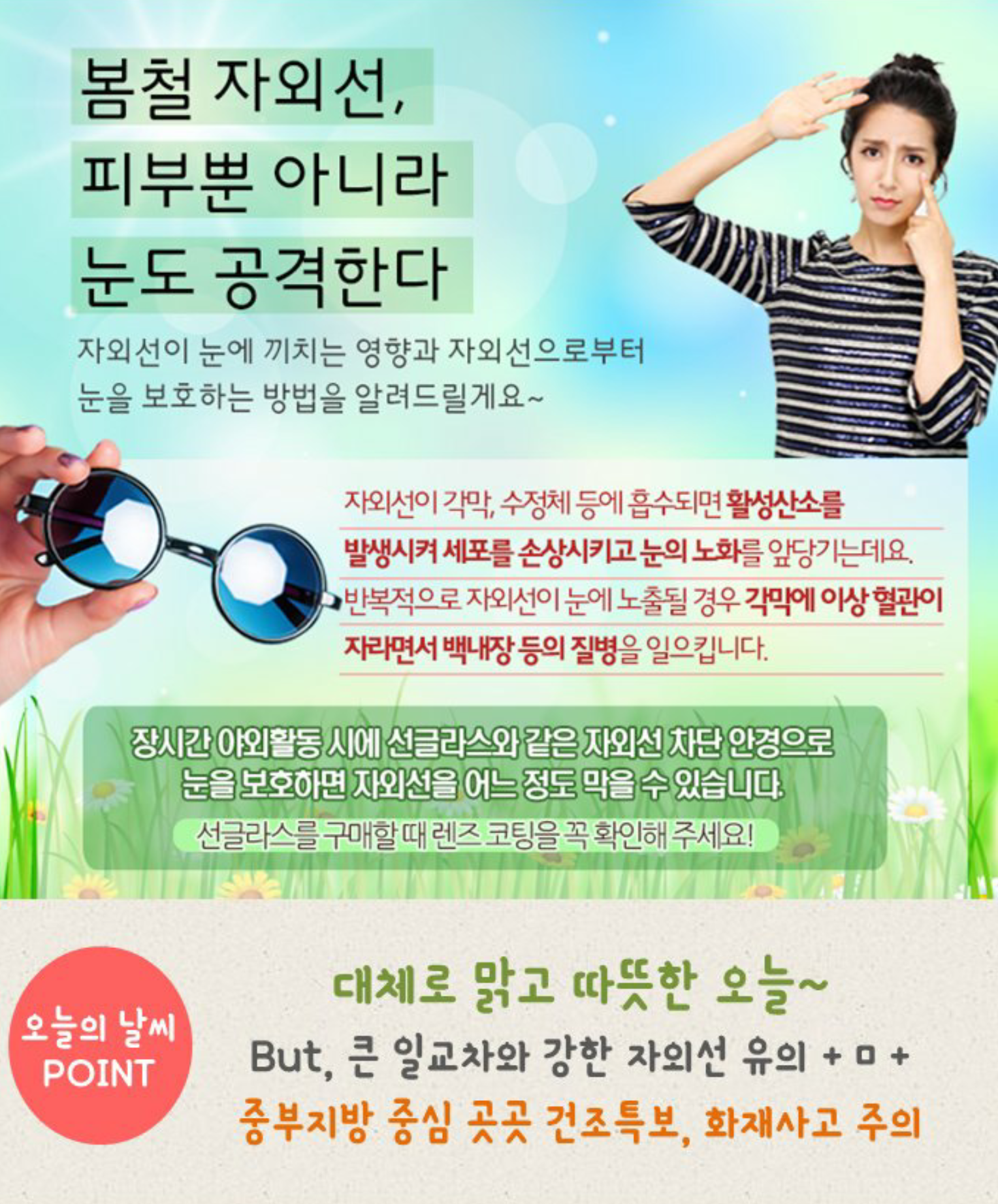 더불어.... 장시간 야외활동 시에 선글라스를 끼는게 좋다고 하네요..