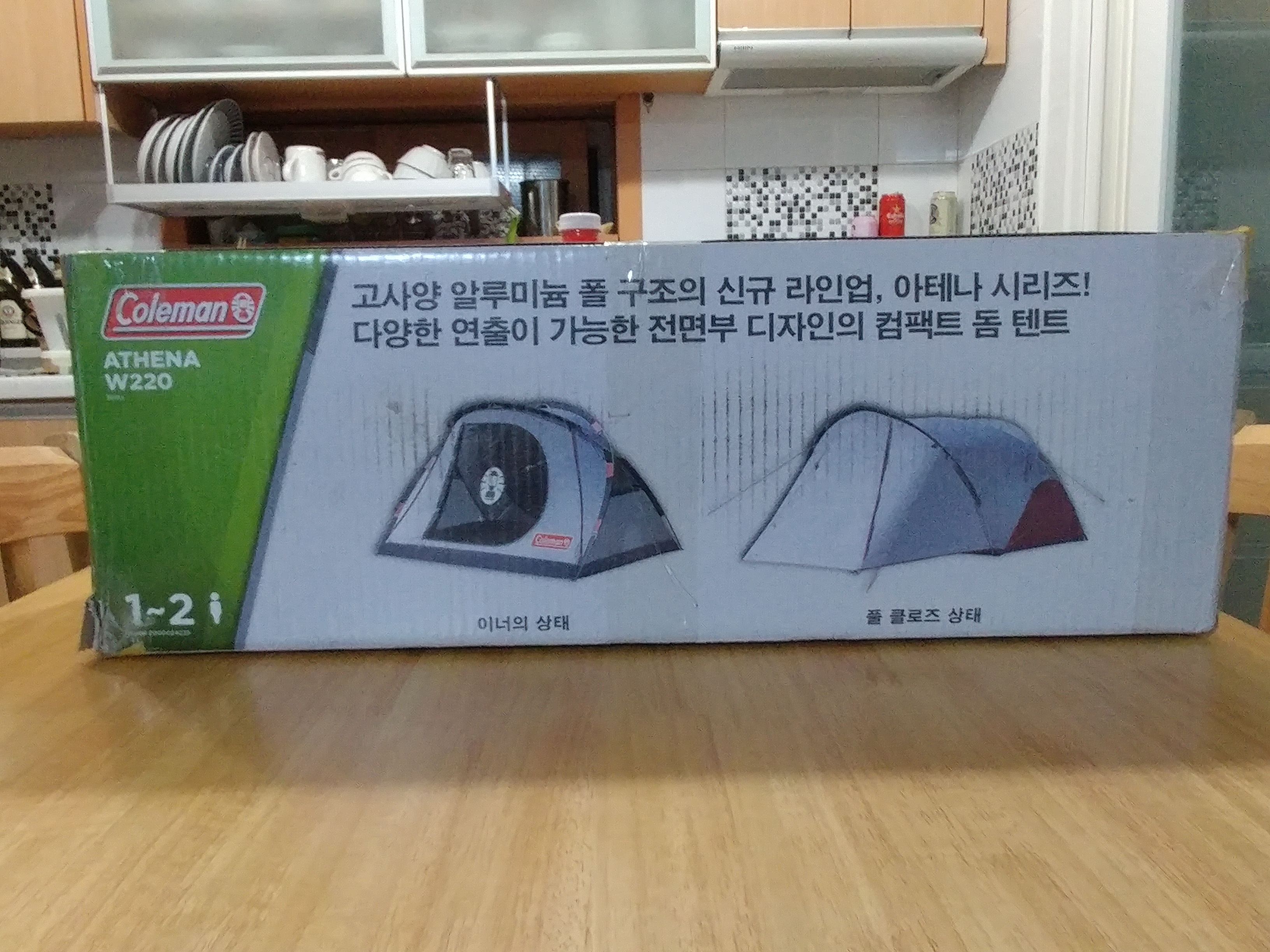 이번에 콜맨 아테나돔 w220으로 구입했습니다 저희는 부부캠이서 사이즈도 딱 좋구 설치 철수가 너무 좋더라구요^^