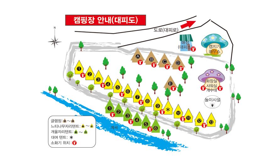 시원한 나무그늘 싸이트, 바로옆 깨끗한 계곡, 아이들 방방이와 수영장이 있구요..