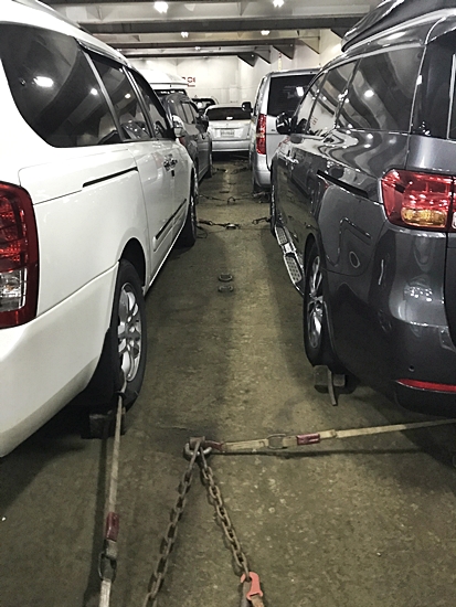 * 출발지에 빨리 도착 주차하면 제일 늦게 차가 빠집니다. 지하로 주차하면 늘 목적지에선 늦게온 차량들 부터 빠지고 한시간 정도 제일 늦게 배에서 빠져나갑니다만 새벽에 도착하니 뭐 그리 바쁠것도 없습니다.