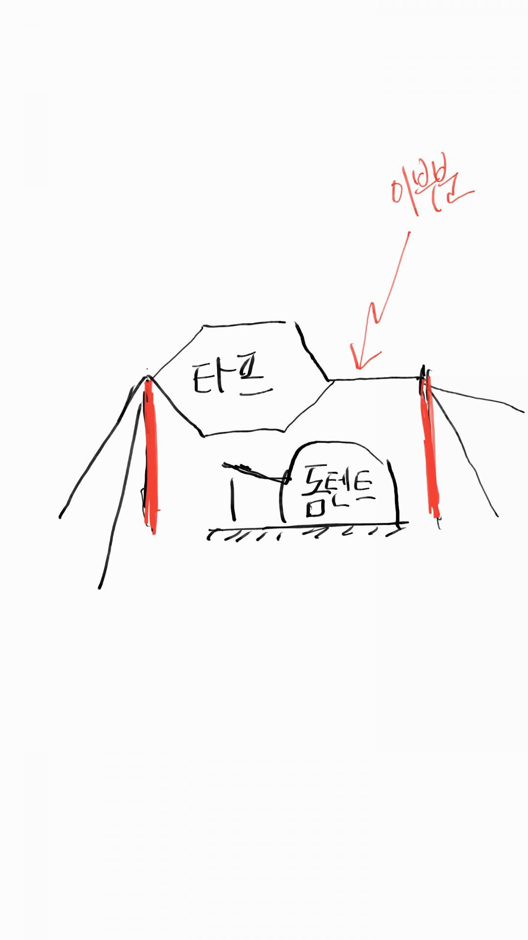 아래 그림처럼 사이트 구축을 하고 싶은데 타프끝에서 타프 폴까지 연결할수 있는 방법이 뭘까요?