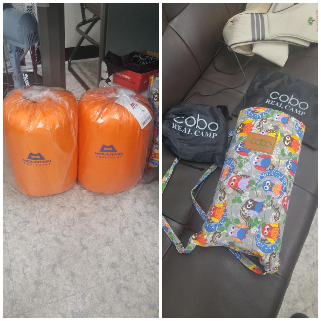 해먹이랑 스텐드야 준선이가 필요하다면 넘어갈꺼 같고... 있는 쿨러, 써큘, 침낭 또산건... 애도... |