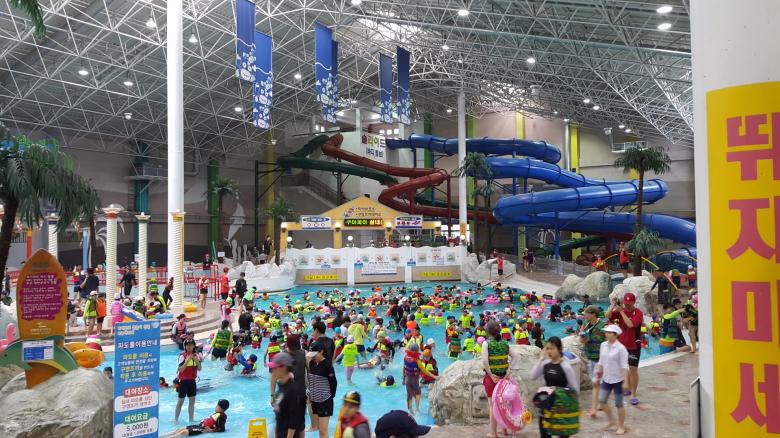 모임징소가 천안상록리조트라서 워터피아 왔는데 사람이 너무 많아유