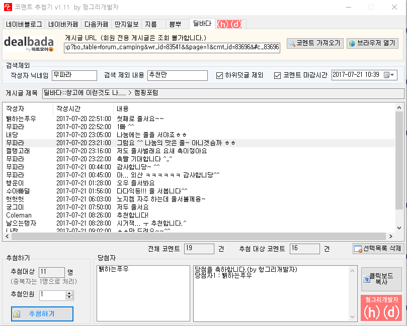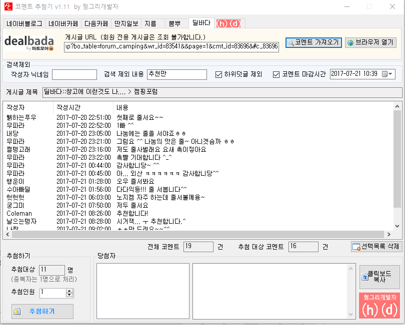 코멘트 추첨기 입니다 .. ^^