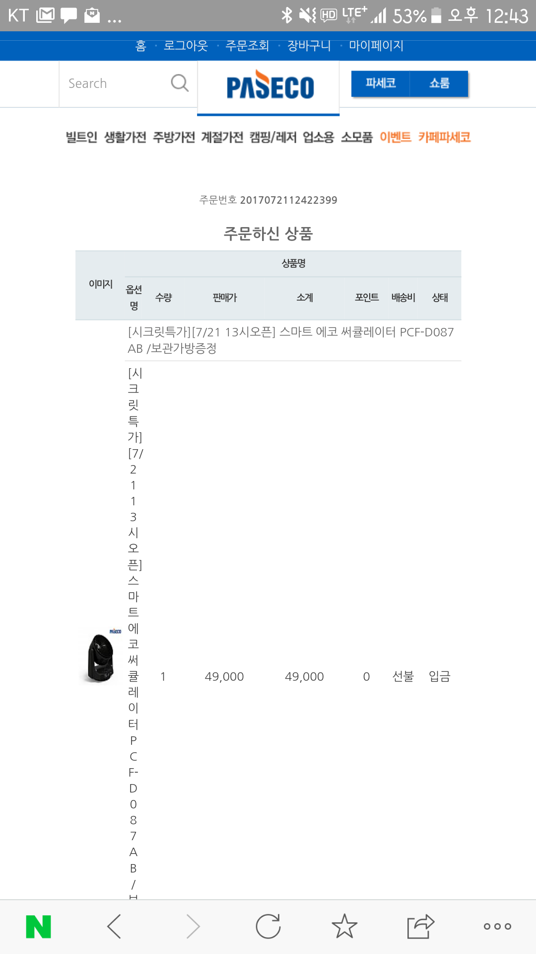 파세코 써큘 결제 됩니다 > 캠핑포럼