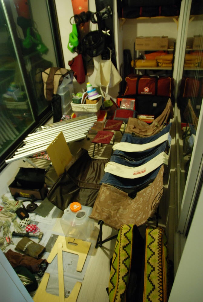 타프아래에서 텐트 친 다음 살림살이 정리.