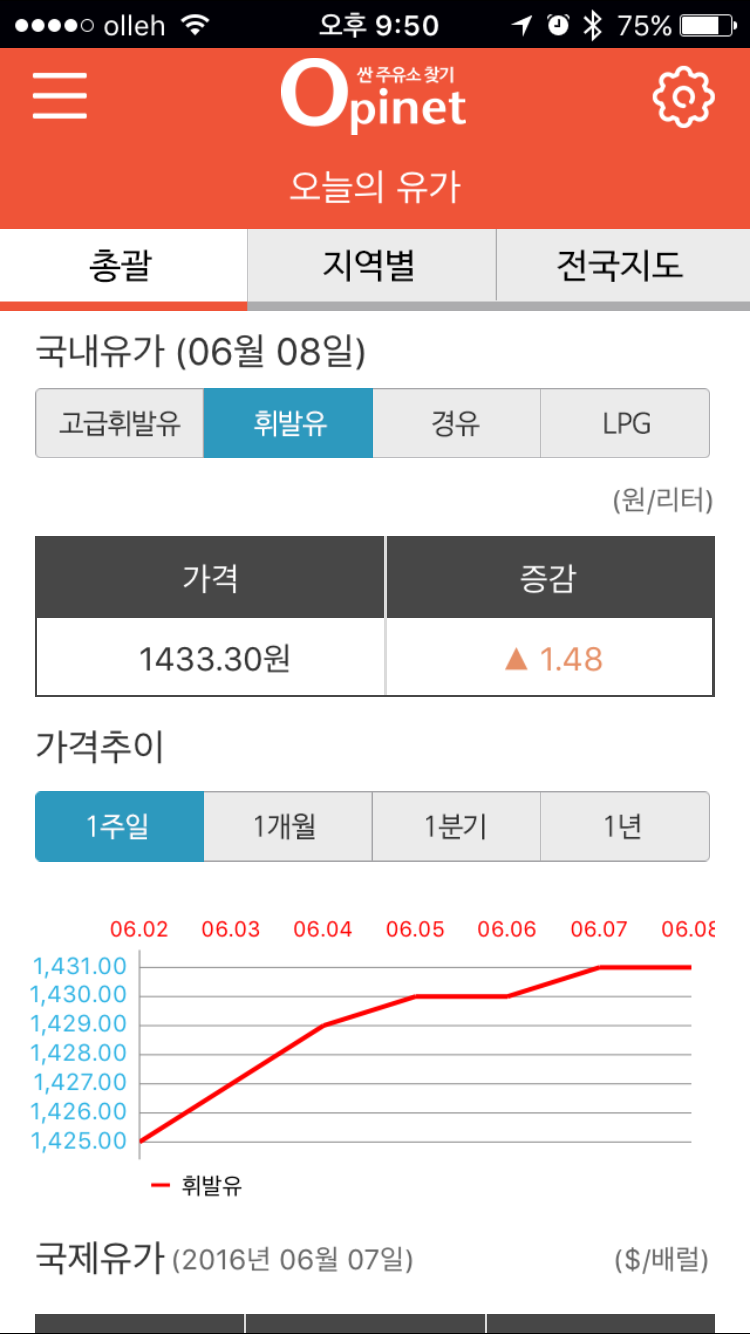 오르는덴 국제유가가 실시간으로 반영됩니다 ㄷㄷ;; |