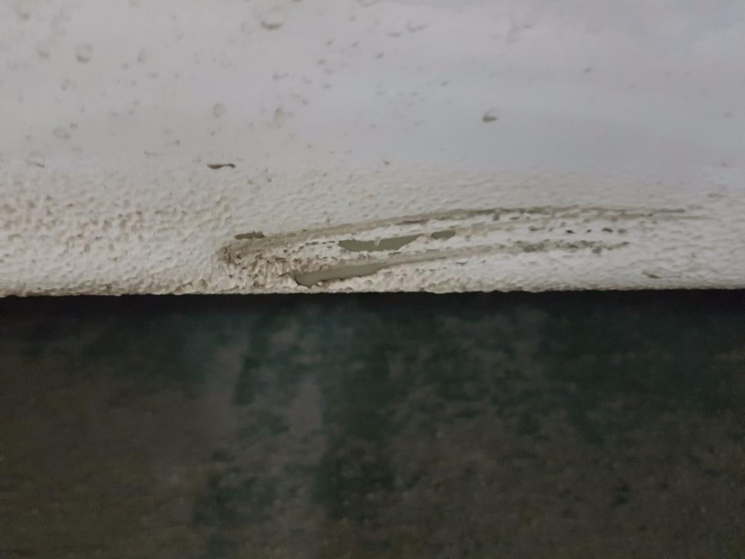 1.사이드스텝 아랫부분 긁혀서 살짝 찌그러지고 철판 칠벗겨짐(녹안슬음) 안쪽으로 찌그러짐.