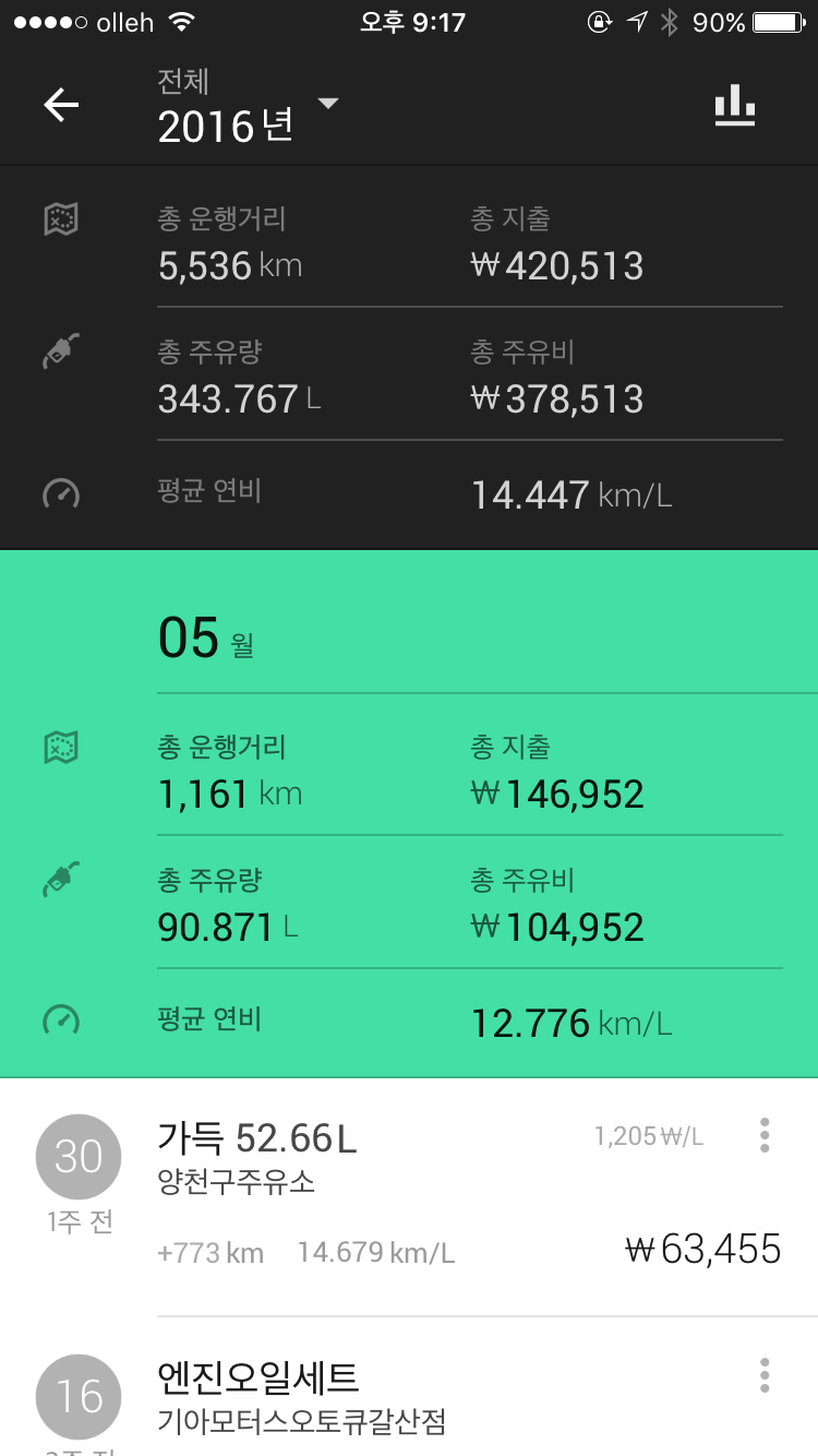 풀투풀로 주유하시면 계산되어져서 나와요!