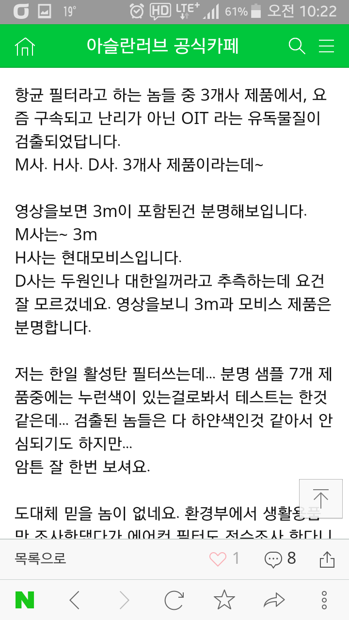 옥시 사태에 이어서 차량용 에어컨 필터라니ㅠ