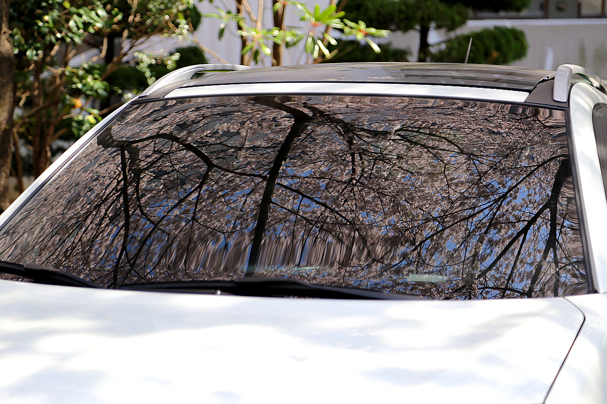 앞유리에 벚꽃이 만개했네요~반갑습니다! |
