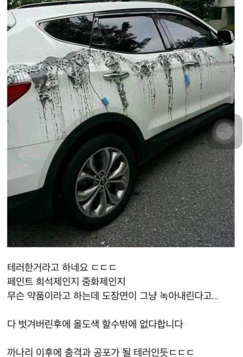 저 테러를 당하면 무조건 도색작업을 다시 해야 한다고 합니다.
