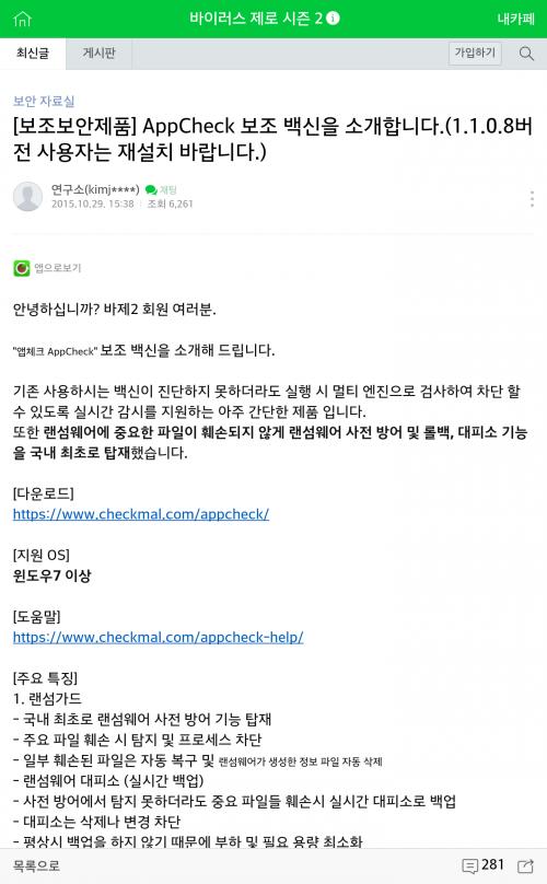믿고쓰는 바이러스 제로 카페 제품이죠 ㅎㅎ 좋은 프로그램 소개 감사합니다. | ||