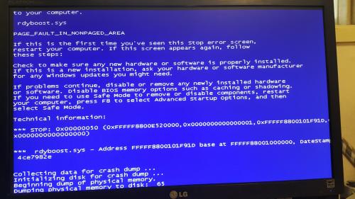 인터넷에 블루스크린 0x00000050 으로 검색하면 관련정보가 나올겁니당. 최근에 부품추가하신건 없을테니 일단 램 재장착부터 해보심을 추천합니다. | ||