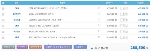 부모님 컴퓨터가 사망하는 바람에 급하게 견적을 뽑아봤습니다.