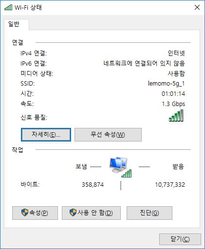 속도는 877mbps, ~ 1.3gbps 왔다갔다하네요