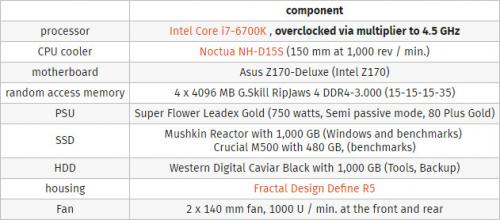 벤치마크 시스템 구성은 위 표대로 입니다.