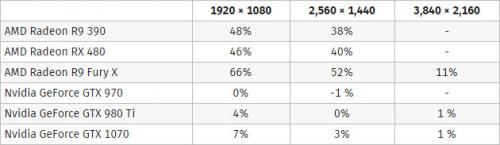 평균적으로, GTX 1070에 비해 20% 성능이 낮은 Fury X 가 벌컨으로 가속하자 1070