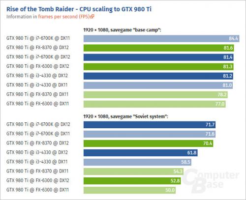 DX 12에서 Rise of Tomb Raider 로 Fury X 와 GTX 980 Ti 를 DX11과 DX12 각각의 API로