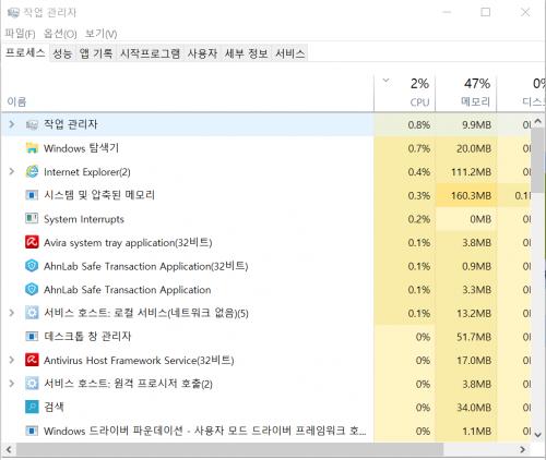 제어판에서 ahnlab safe transaction 삭제하고 재부팅하면 항상 상주하는 서비스 없어질텐데