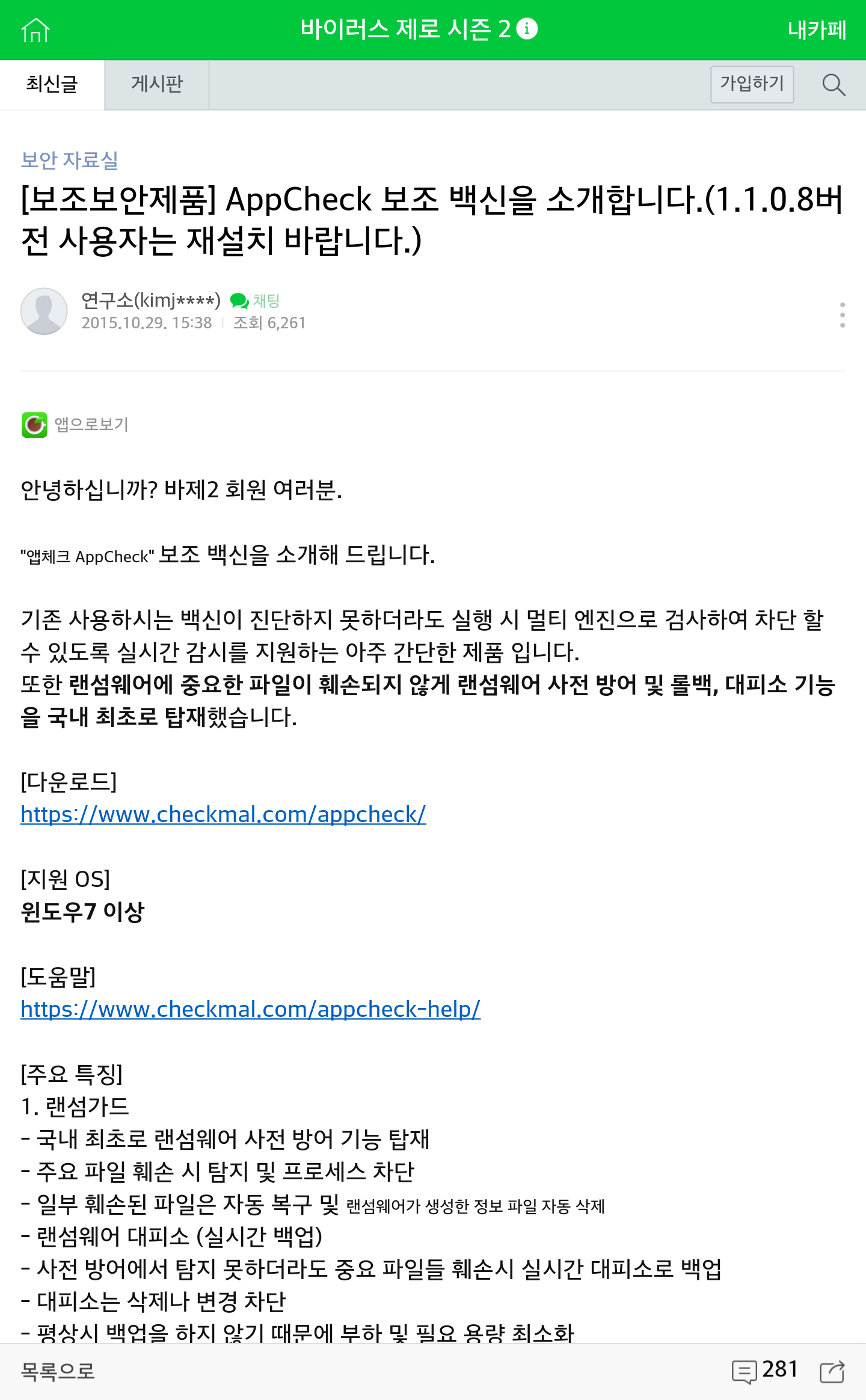 믿고쓰는 바이러스 제로 카페 제품이죠 ㅎㅎ 좋은 프로그램 소개 감사합니다.
