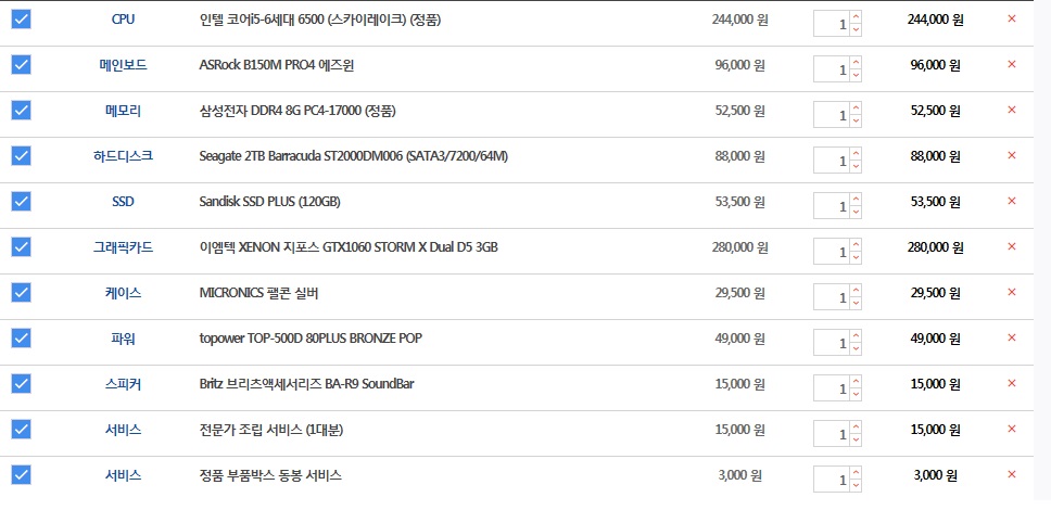 ssd 120기가로 내리고 이것저것 좀 더 저렴하게 짜봤는데도