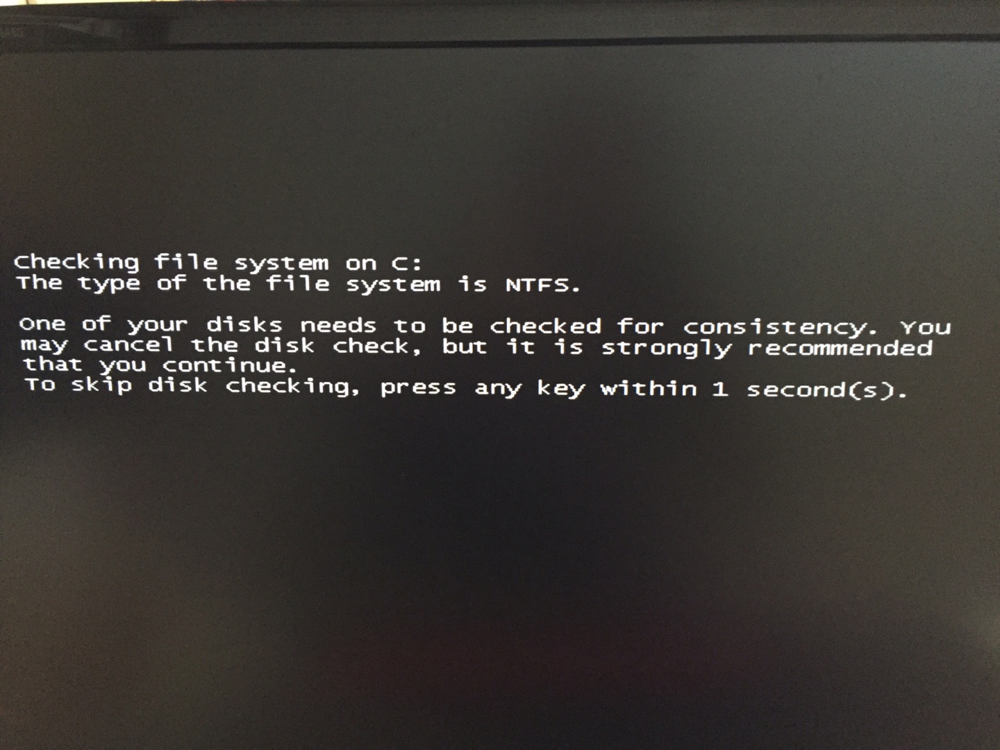 일반적으로 체크 디스크 건너 뛰는 방법은 그냥 부팅한 후 체크 디스크 들어가기 위한 메세지 뜬 직후