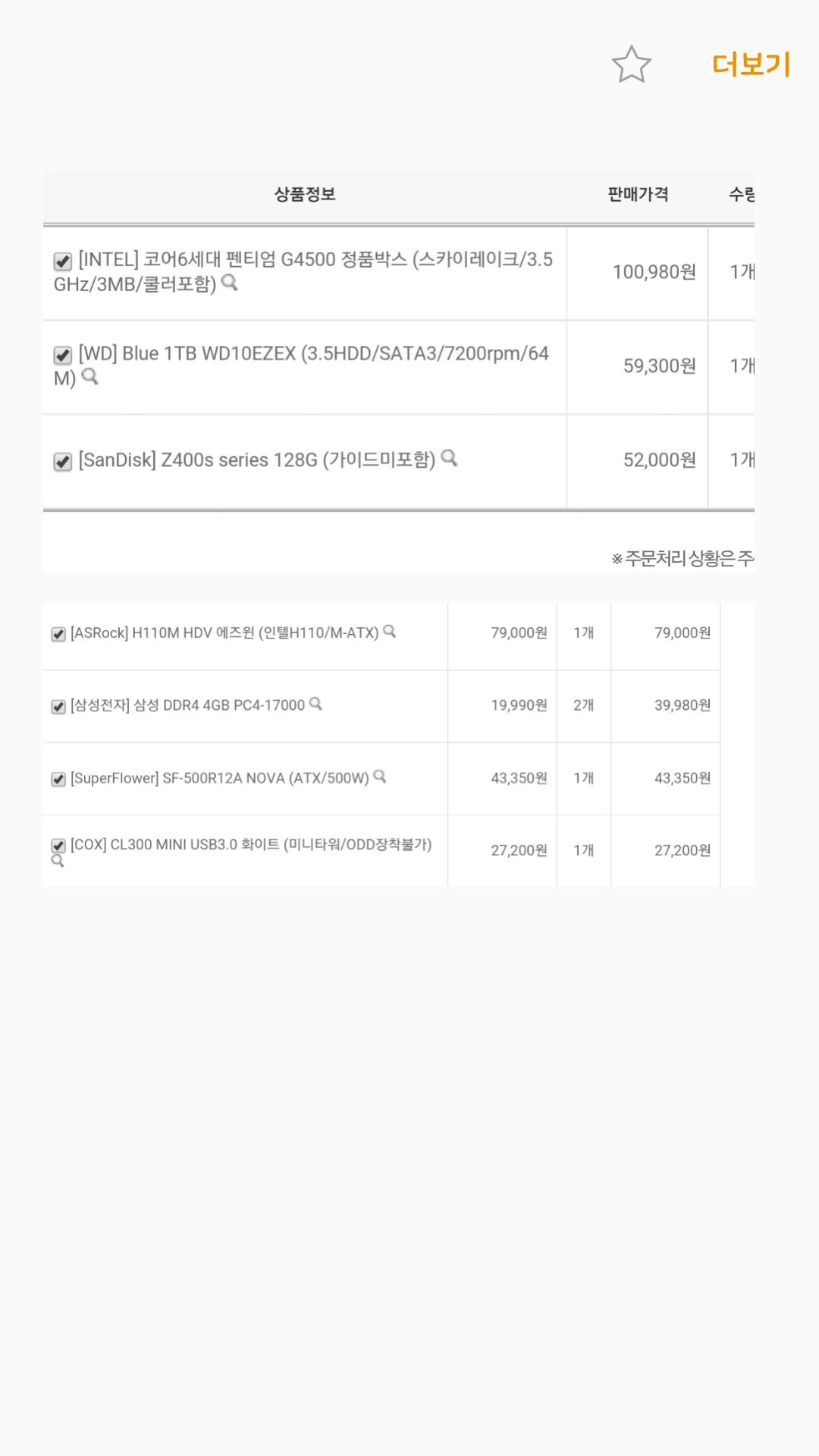인터넷 검색해서 추천견적대로 주문을 넣었는데요