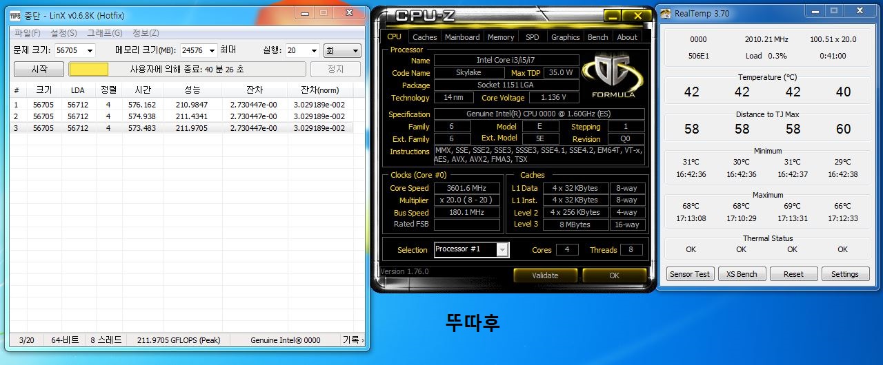 저도 오늘 뚜따했는데요.. 음... 2.2 @4.0 에서 90도대 찍히던거 70도대 찍힙니다. ㄷㄷㄷ 엄청좋네요. 근데 전 실리콘이 없어서 투명한거 창문붙이는거로 붙였는데 내열실리콘 써야한다네요. 나중에 안녹을까 모르겠어요 ㅋ |