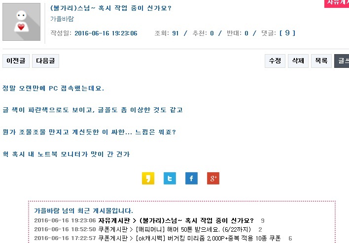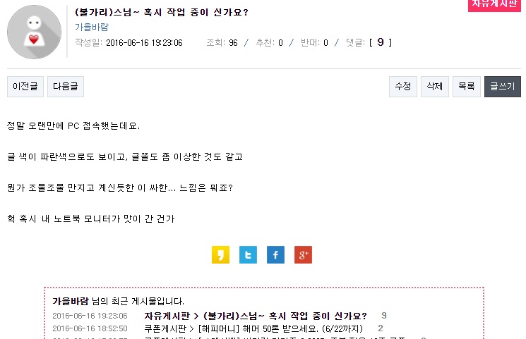 노트북을 하도 간만에 켰더니 요래 이상한 증상이...ㅜㅜ