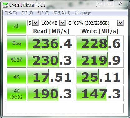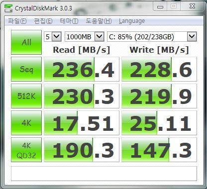 낮게나오는건 구형노트북에 ssd달아서 결과가 좀 낮게나온거같습니다