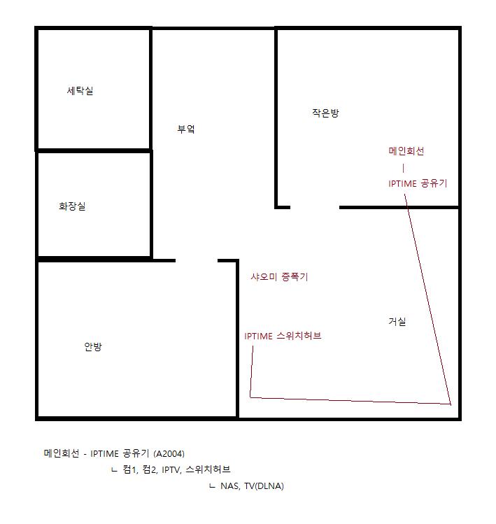 지금 위와 같은 구조로 네트워크가 구성되어 있는데요, 안방에서 생활하시는 부모님이 하도 안방에서