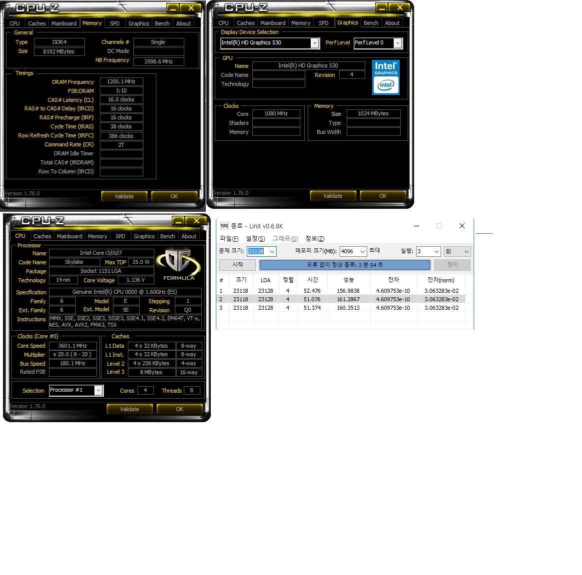 pro4s 메인보드 전압 1.15v 삼성메모리 싱글 2400 내장 그래픽 600줘서 1080MHz 온도는 60중후반까지.