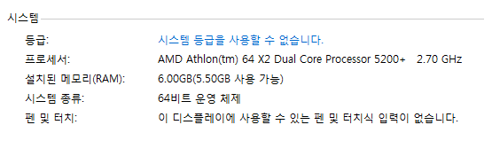 저랑 사양 비슷하네요 ㅋㅋ 저는 6000에 램 4기가 ㅋㅋ