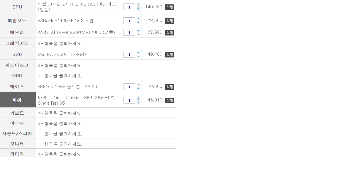 HDD는 굳이 필요없을것같아 추가하지 않았습니다.