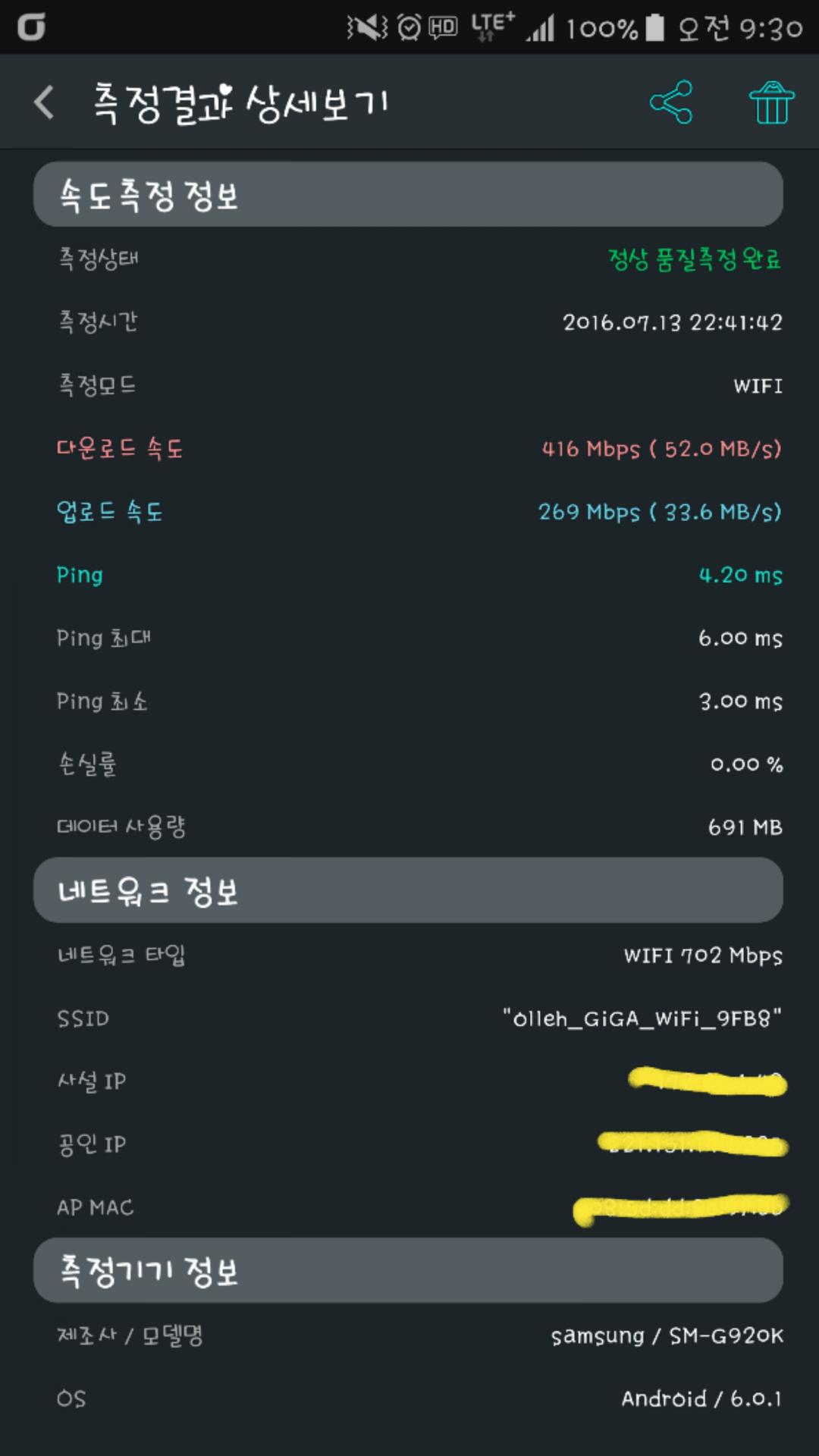 기가와이파이도 거실에 설치했는데 52메가 나오네요 ㄷㄷ