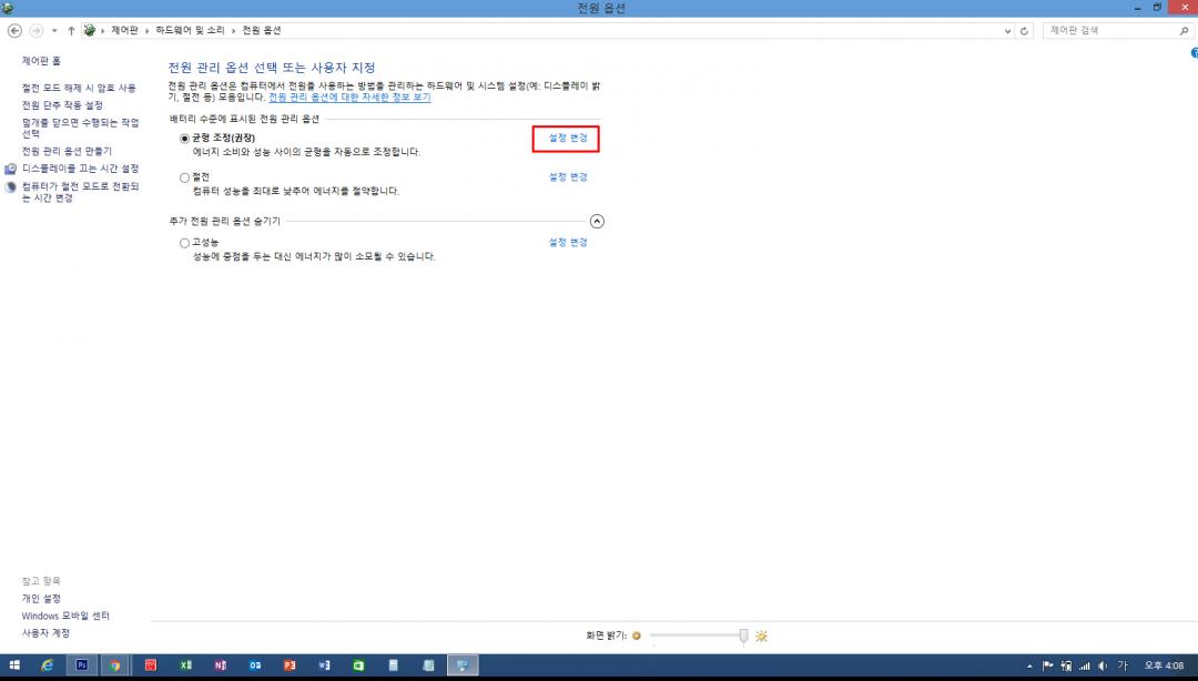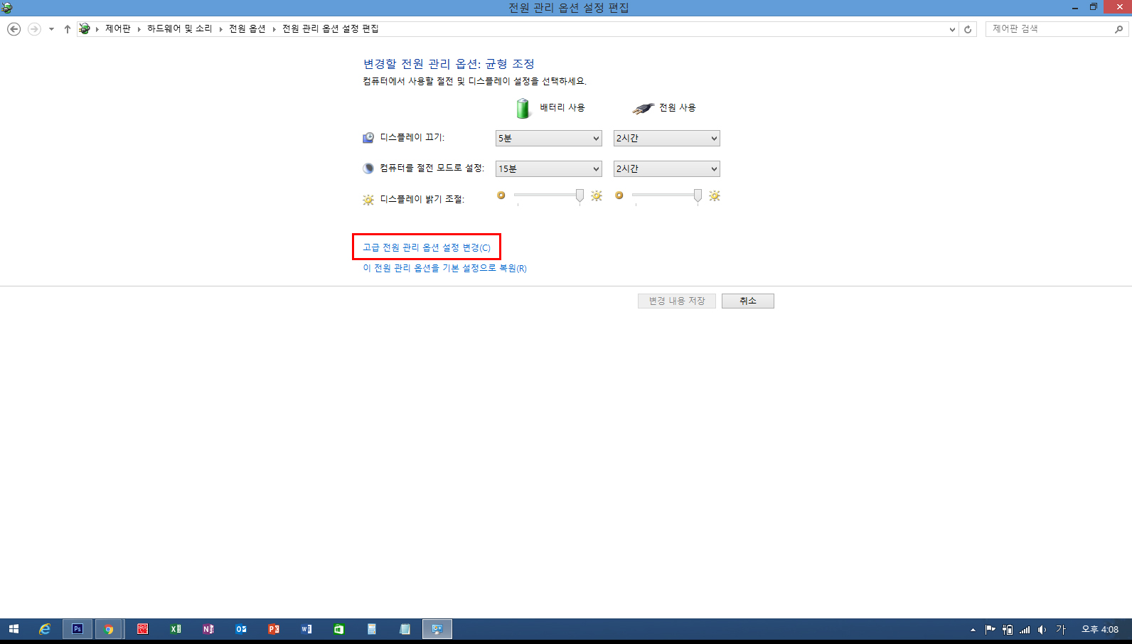 선택적 절전모드 설정은 아래의 그림을 따라 해보시면 될 듯 합니다.