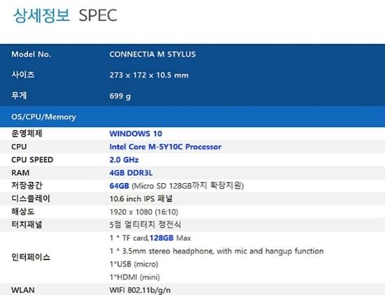 비슷한 가격대의 베이트레일 LG탭북이나 체리트레일 서피스3에 비해 사양이 훨씬 좋습니다