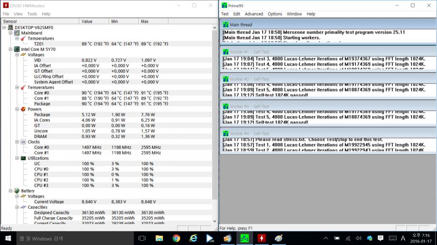 2. 이제 Prime95를 돌려서 CPU를 최대온도로 끌어 올려 봅니다.