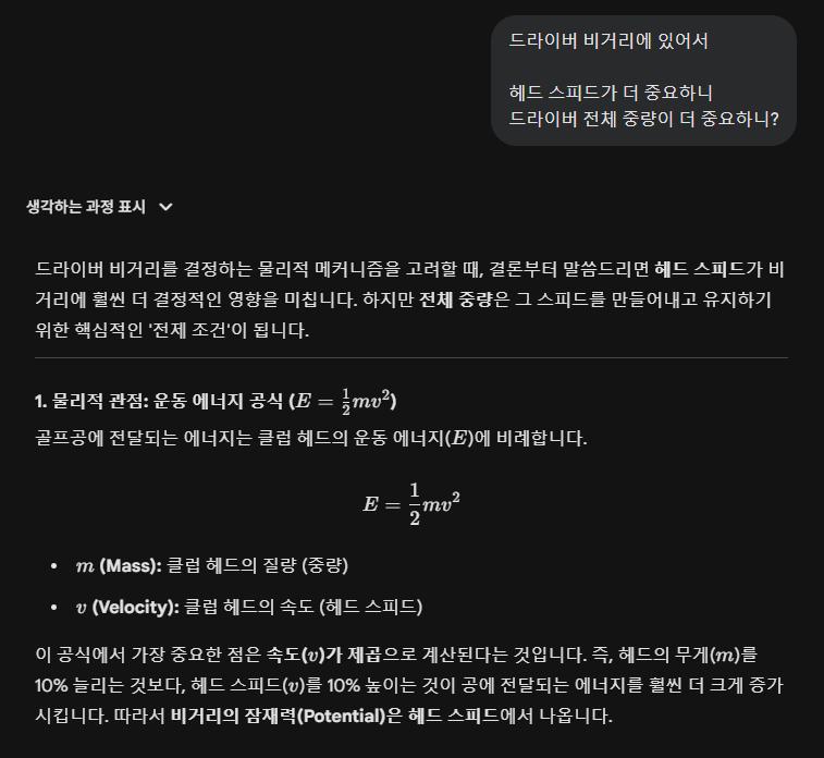 저도 중량과 비거리간에 상관관계가 궁금하여 Gemini 한테 물어봤는데