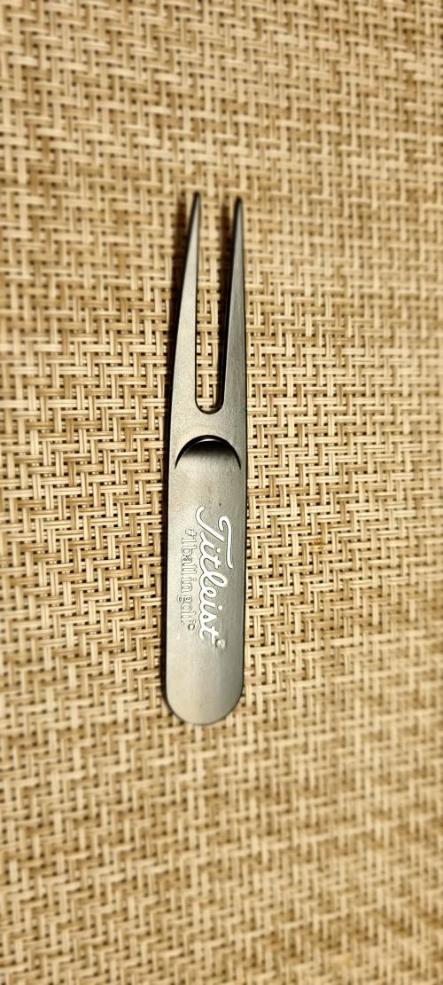다양한 그린보수기가 있는데 올해초 타이틀리스트에서 보내준 그린 보수기입니다. 심플하면서 품위가 있는데 아무래도 포크모양의 2지창으로 되어 있어서 주머니에 넣고 다니기에는 불편했습니다. 더우기 자성이 없기때문에 따로 부착할 만하지도 않아서 조용히 모셔놓고 있었습니다.