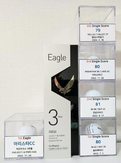2022년에 세번의 80~81 스코어를 기록한 이후 작년에는 부진했는데, 첫 7자 싱글 스코어를 기록했습니다. 덕분에 기념구도 오랜만에 하나 추가되었네요.