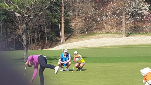 18홀 이상 걸은듯 하네요 ㅎㅎ 박결 정말 이쁘고... 장하나 티비랑 진짜 똑같구요 ㅎㅎㅎ | ||