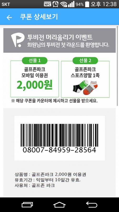 골프존파크 2천할인+양말 쿠폰드립니다