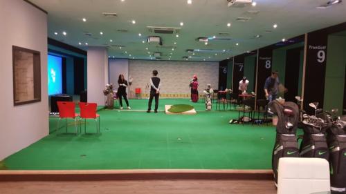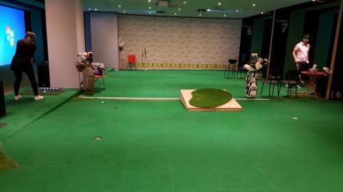 그나저나 요새 실내 연습장 많이 좋아졌네요. 양쪽 벽쪽으로는 흔히들 보는 스크림 타석이 있고 가운데는 요철을 가진 인조잔디가 있어 퍼팅 연습 할수있게 되어 있습니다. 사진 보시면 가운데 나무로 된 경사판이 있는데요. 오르막이나 내리막 어프로치 연습하기 위해 만든 거라고 하더군요