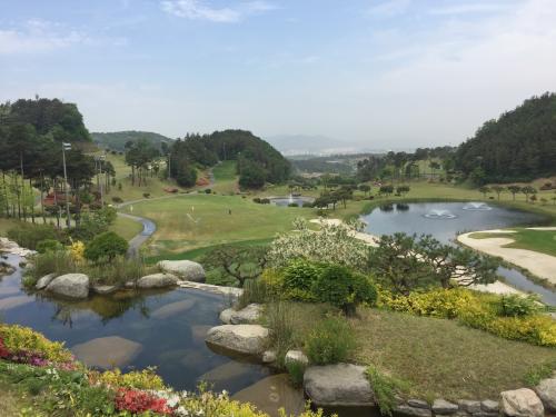 진천에 있는 크리스탈카운티cc 전반에는 비가 솔솔내렸고 후반엔 바람이 미친듯이 불어 힘든 경기 였습니다. 그린이 이단 삼단이 많아 좀 어렵고 몇홀 그린이 빵구가 좀 있어 볼이 구르다 통통 튀네요.